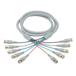 This series of five line 75 Ohm cable is perfect for the transmission of both audio and video signals. The true 75 Ohm BNC male connectors provide impedance matched performance to assure a clean signal. The molded strain reliefs on the BNC connectors and on the cable jacket result in a durable and long lasting assembly. Individual cables are color coded Red, Green, Blue, Black and Gray to assure correct hookup. Available in 4 standard lengths from 5 to 25 ft.