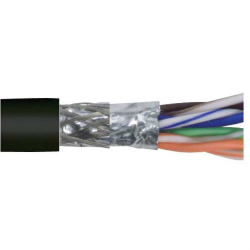 超5类SF/UTP线缆,铝箔编织双屏蔽,低烟无卤护套,4对26AWG多股导线,黑,1000英尺(305米)